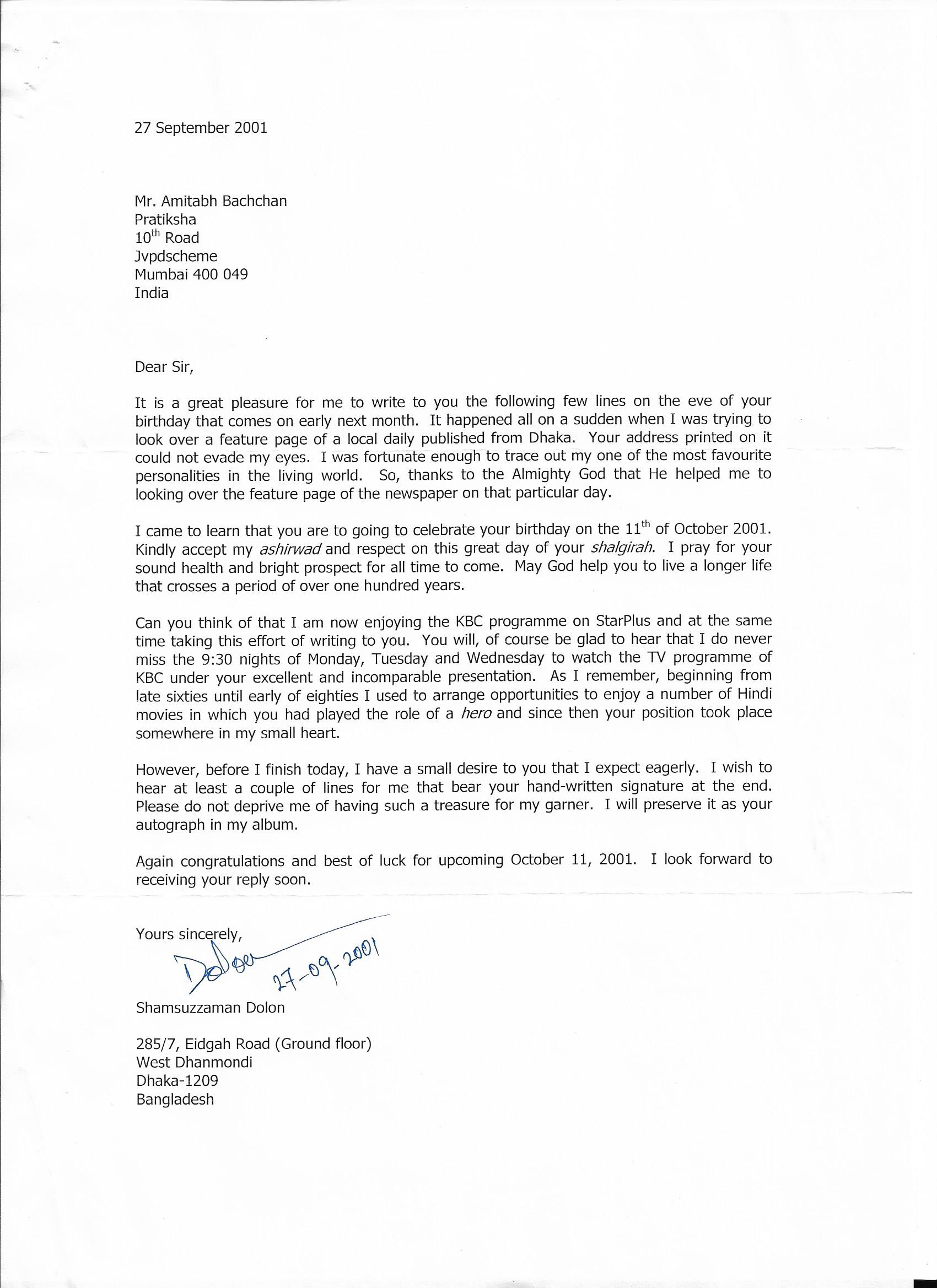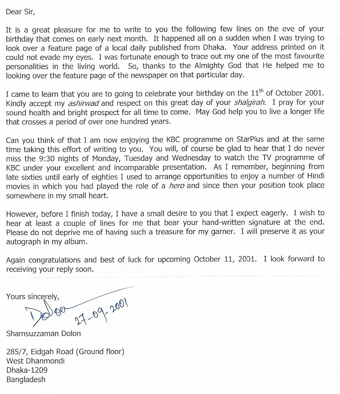 “๐ A heartfelt message to the legend ๐๏ธ โ from a fan in Dhaka ๐ง๐ฉ, wishing the superstar a blessed and joyous birthday ๐. From KBC nights ๐บ to unforgettable roles ๐ฌ, your influence knows no boundaries ๐. A simple request to treasure your autograph โ๏ธ, a symbol of admiration and love โค๏ธ.