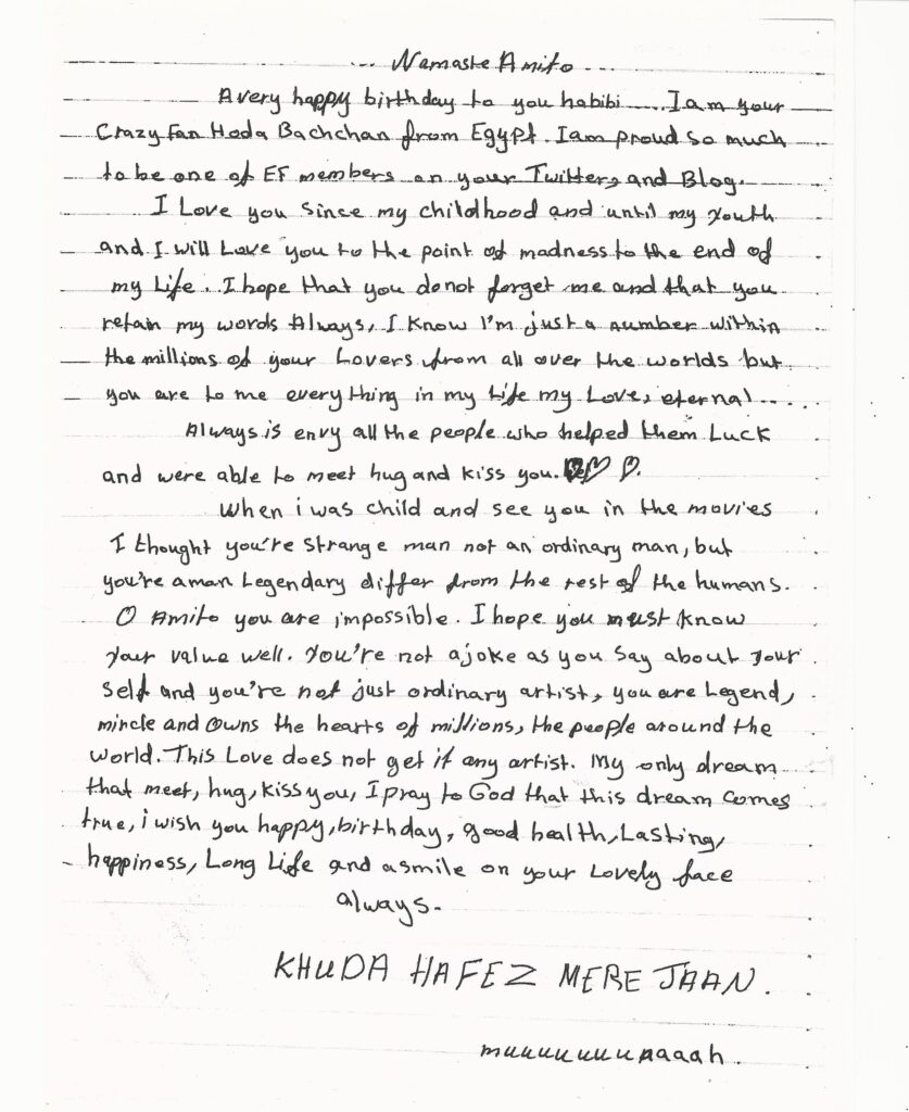 This Heartfelt Birthday letter from Hoda Bachchan, a devoted fan from Egypt, pours out a lifetime of love and reverence for Amitabh Bachchan. With Emotions flowing through every line, she calls him a legend, a miracle, and her eternal love โ€” proving that true Fandom is a beautiful blend of respect, passion, and Lifelong Dreams. ๐ŸŒ๐ŸŽ‚๐Ÿ’–